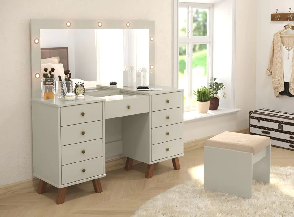 Penteadeira Camarim Eloá com Espelho Luz de Led com Banqueta Mesa de Maquiagem
