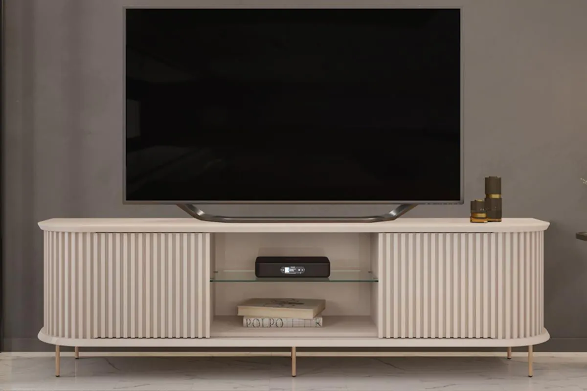 Rack Bancada p/ TV até 75 Pol Atlas 100% MDF Ripado c/ 2 Portas