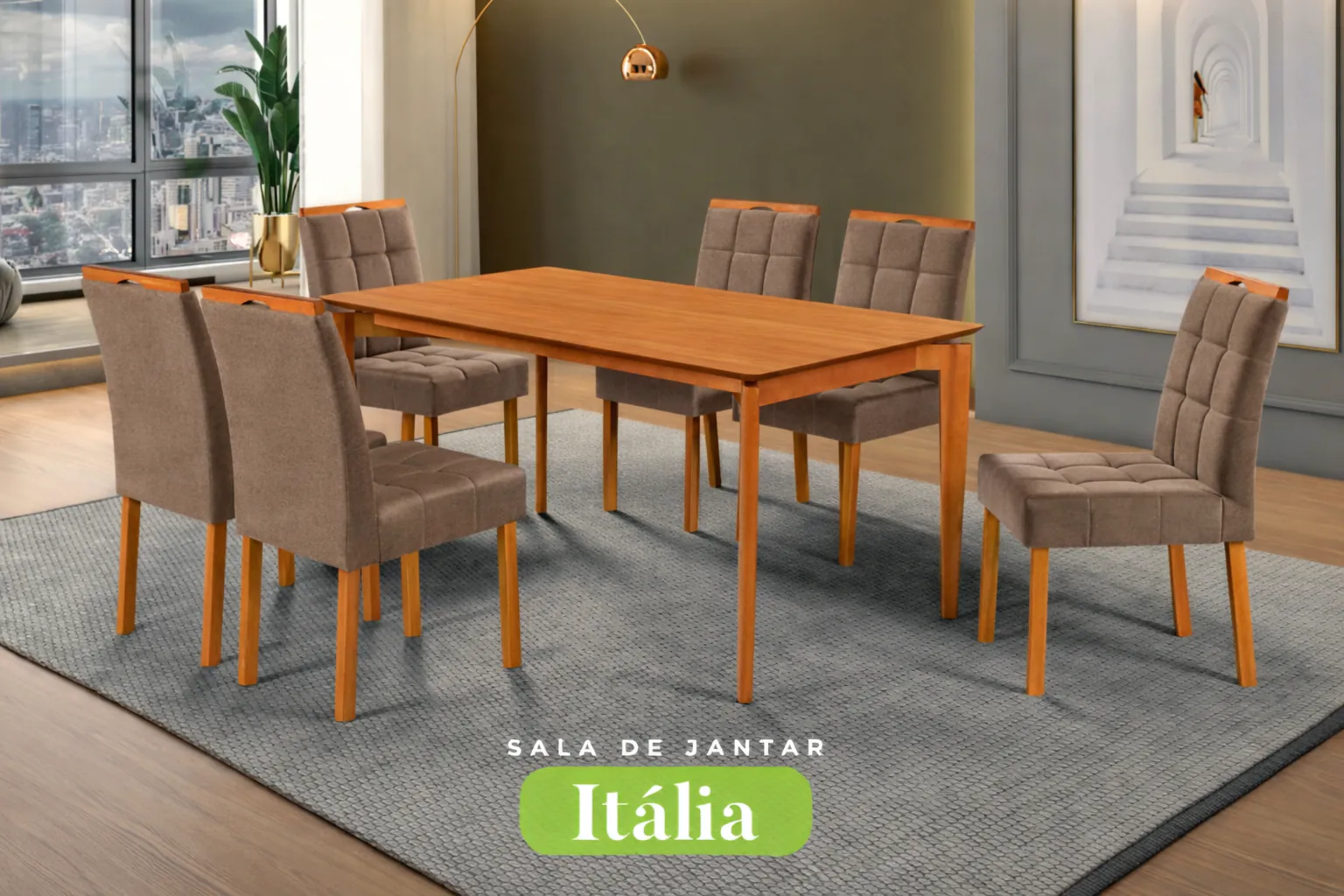 Conjunto Sala de Jantar Mesa Itália Madeira Maciça Cadeiras Estofadas Alice