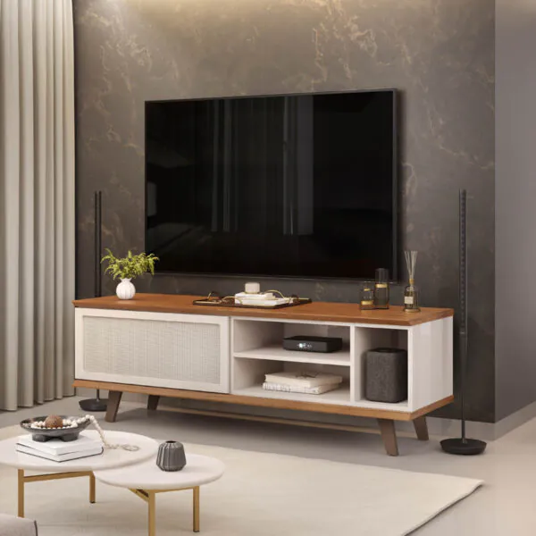 Com design moderno, ótimo custo-benefício e estrutura resistente, a Rack Bancada New Bristol é a escolha ideal para quem busca durabilidade, organização e estilo. Perfeita para TVs de até 55”, ela valoriza seu espaço com nichos funcionais e pés que garantem leveza ao ambiente.