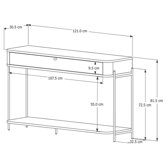 Material da estrutura: MDF 15mm com pés em metal; Quantidade de gavetas: 1 (corrediças telescópicas); Medidas internas das gavetas: 115 cm(L) x 27 cm(P) x 9,5 cm(A) |