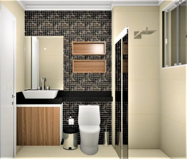 Banheiro com balcão com 02 portas e Nicho.