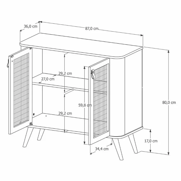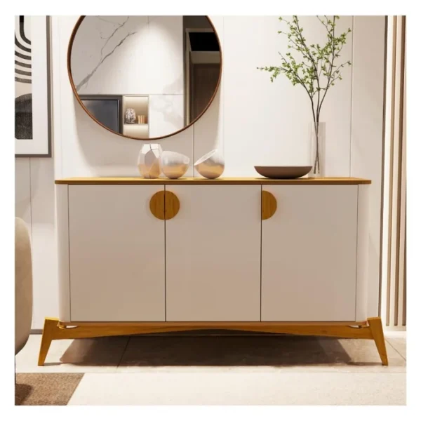 | O Buffet Buriti é uma peça elegante e sofisticada, que valoriza os detalhes em madeira, como o puxador. Possui portas com dobradiças com amortecimento que proporcionam um fechamento suave e silencioso das portas. O acabamento em pintura UV de ótima qualidade garante durabilidade e resistência, enquanto os pés em madeira maciça com acabamento em verniz conferem um toque rústico e elegante ao conjunto. |