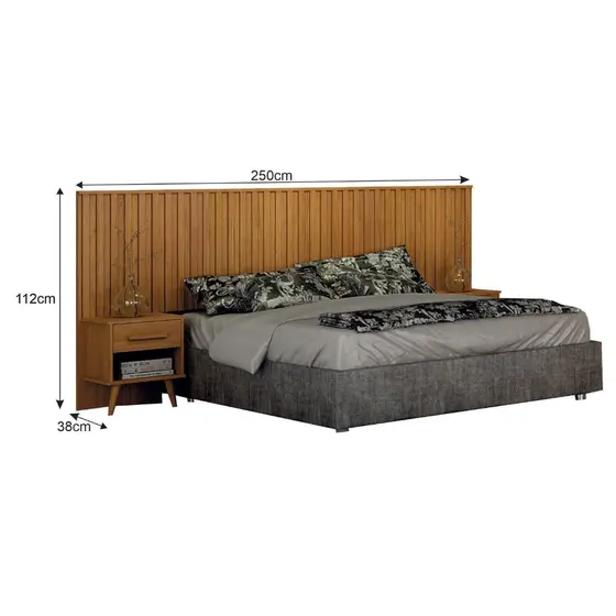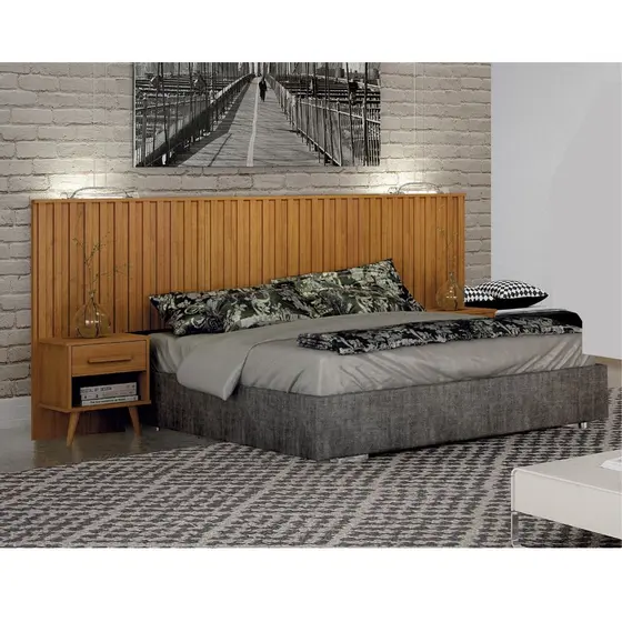 Cabeceira Casal Ripado com 2 Mesa de cabeceira