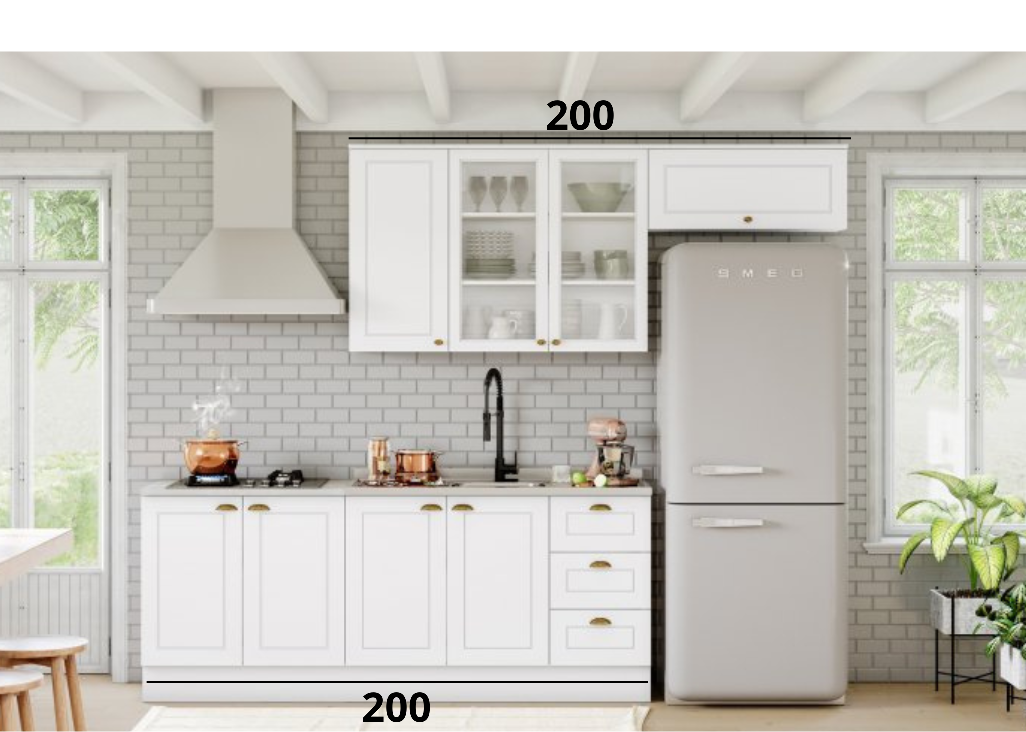 | Cozinha com aéreo com 3 portas de giro sendo 2 de vidro aéreo com 1 porta basculante módulo inferior com 4 portas de giro e 3 gavetas.