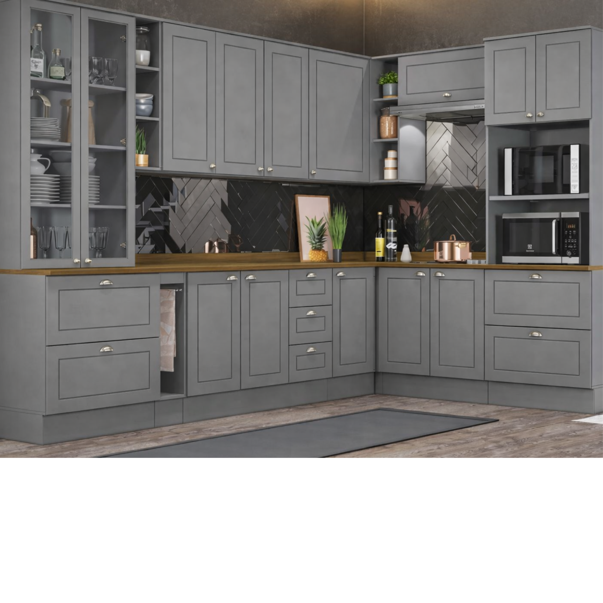 | Estrutura 100% MDF, tampos em BP de alta resistência, corrediças telescópicas para abertura suave, puxadores em zamac que garantem sofisticação, dobradiças com amortecedores para fechamento silencioso e cristaleira com vidro incolor que valoriza ainda mais o design do móvel. |