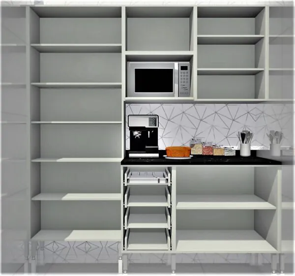 | Tipo de Porta: Misto (Basculante, Giro e Gavetas) |