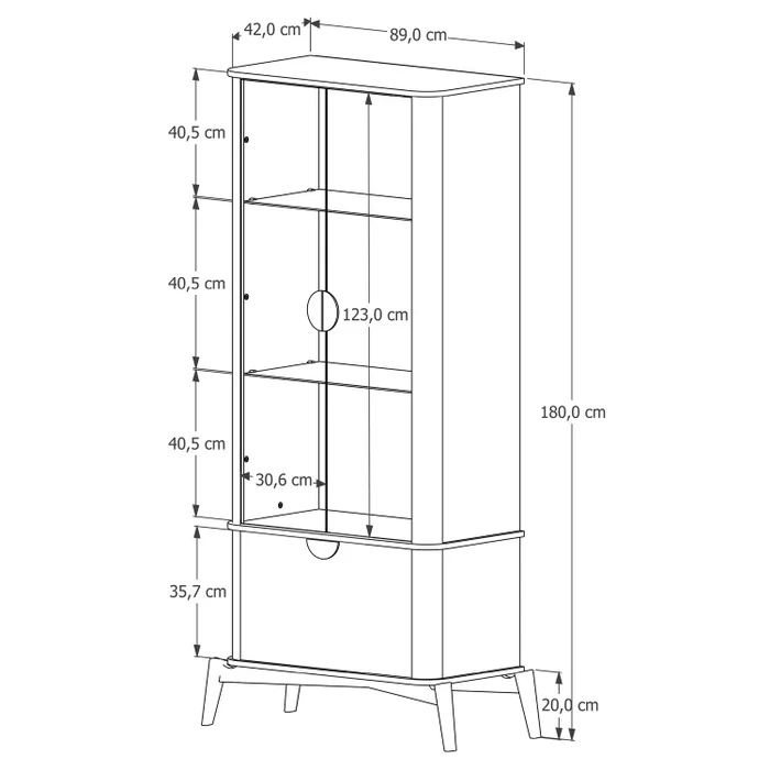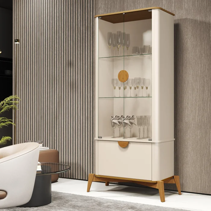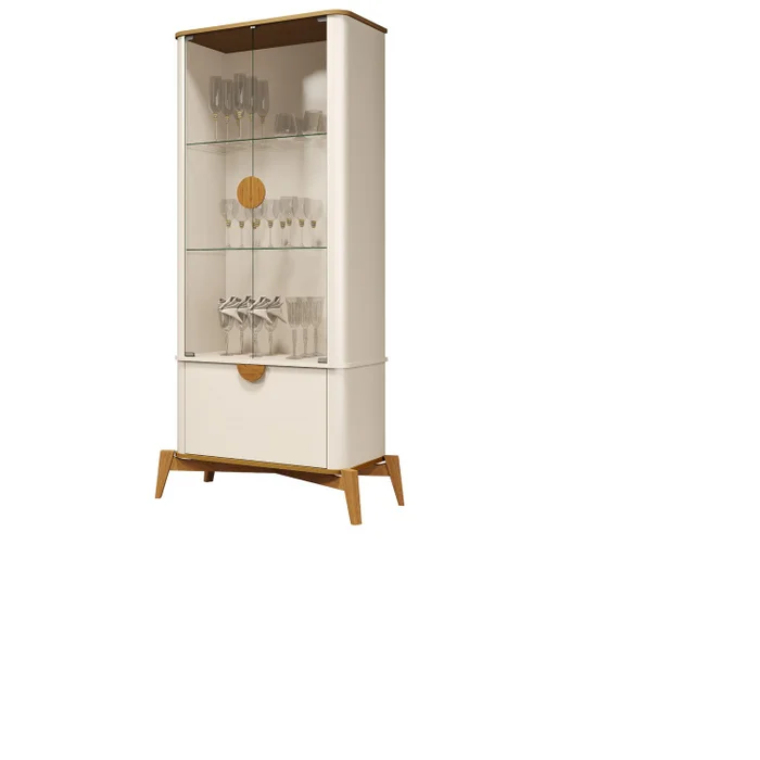 Cristaleira Curva com Puxador e Pés em Madeira Maciça PORTA DE VIDRO