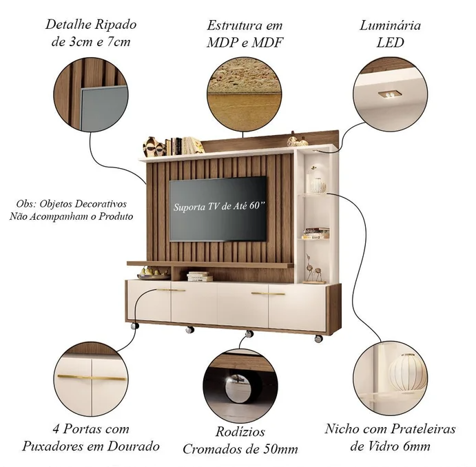 Cada detalhe deste home foi desenvolvido para impressionar do ripado elegante ao amplo espaço interno entregando modernidade, organização e um toque de exclusividade para quem busca transformar a sala em um espaço ainda mais bonito e acolhedor. |