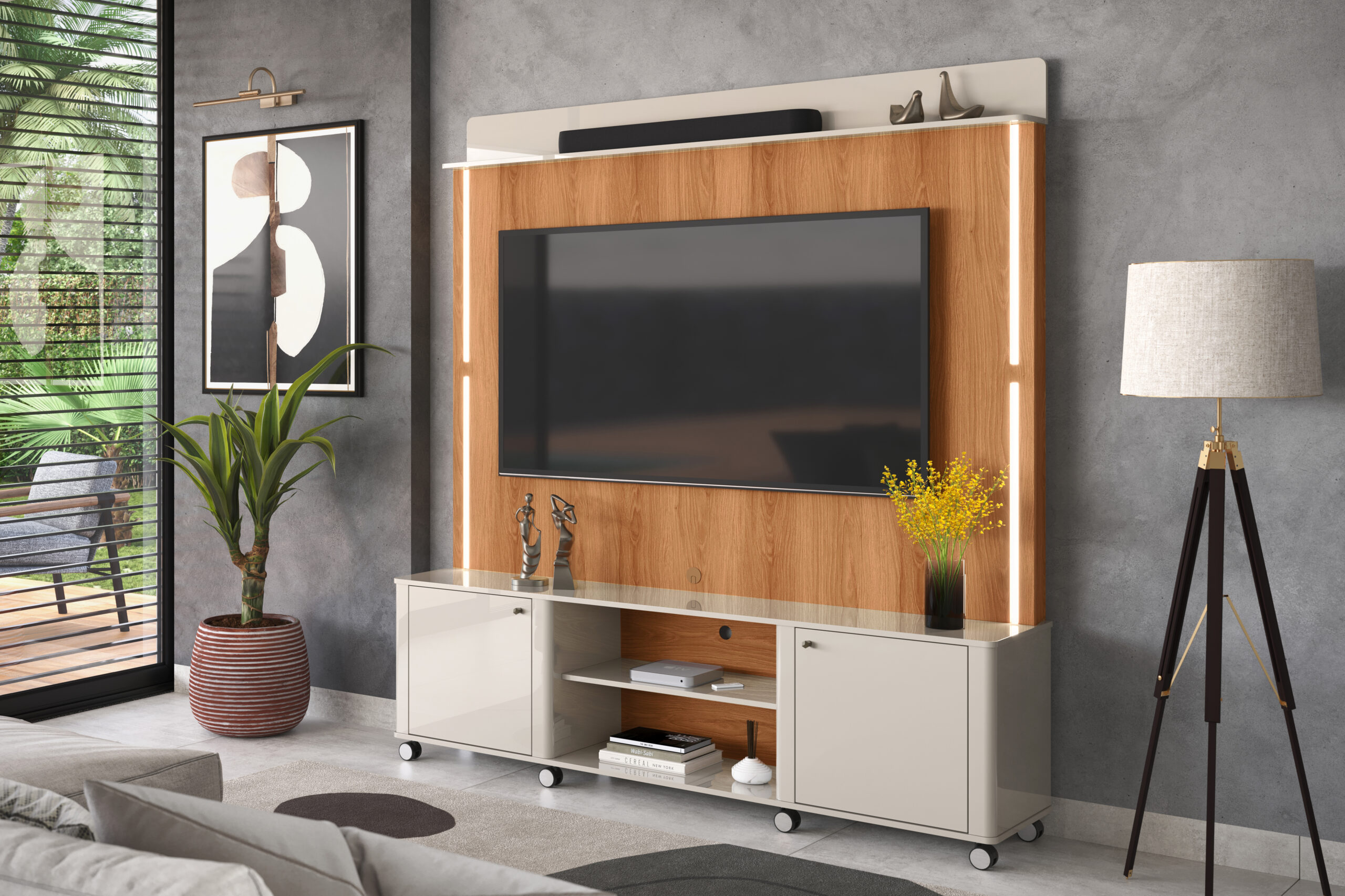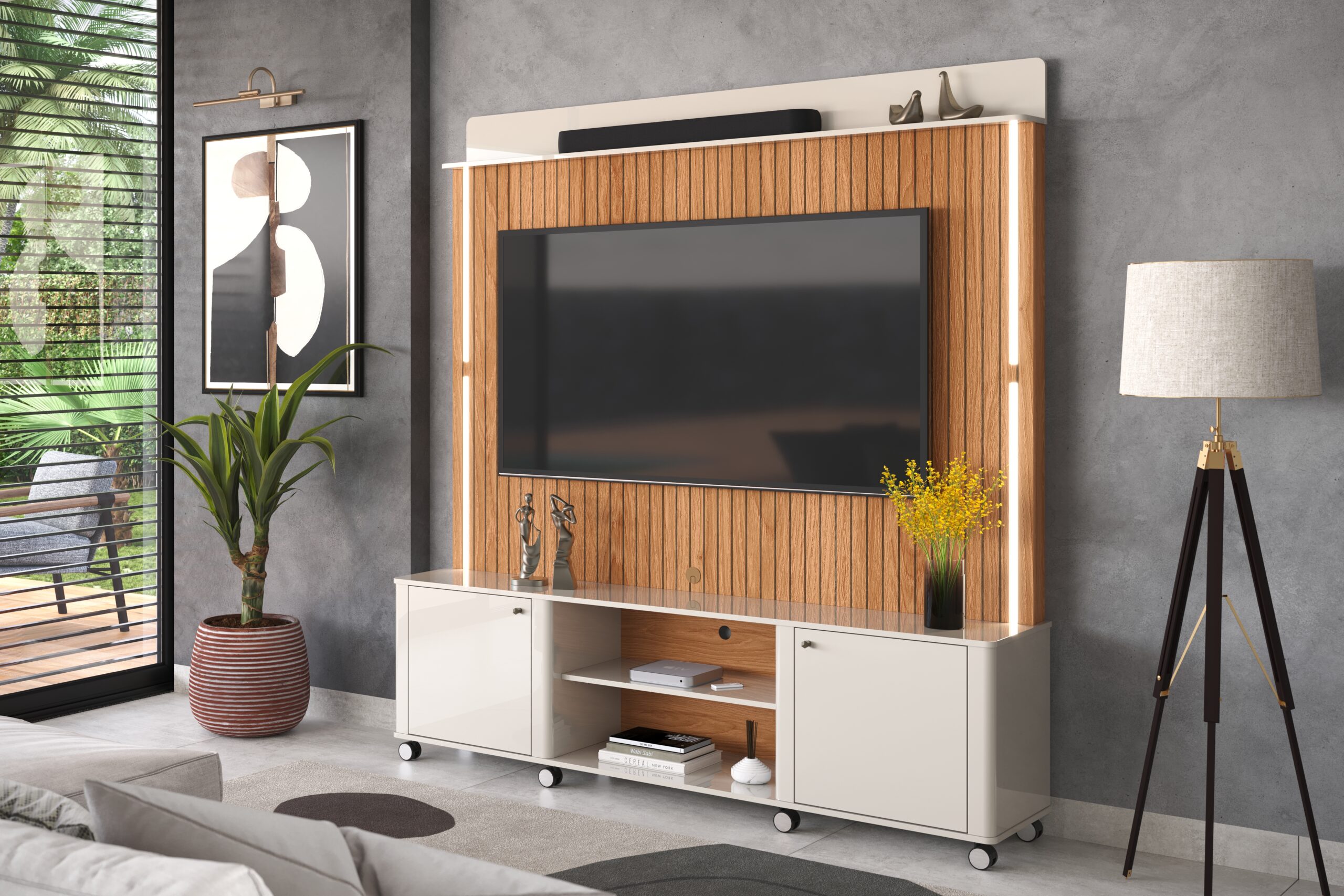 Estante Home Florença para TVs até 75 polegadas 02 portas com Nichos e Led 100% Mdf