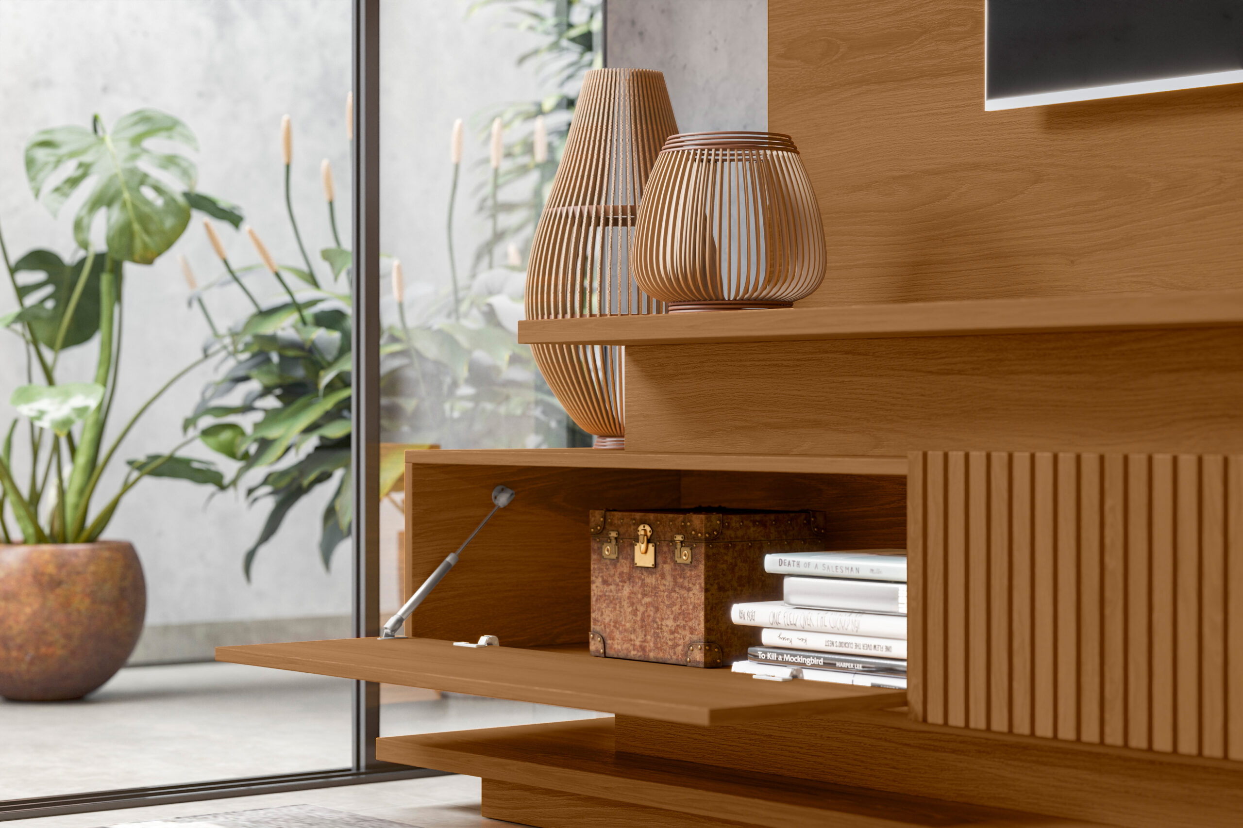 Estante Home para TVs até 65 polegadas com porta basculante e nichos 100% Mdf