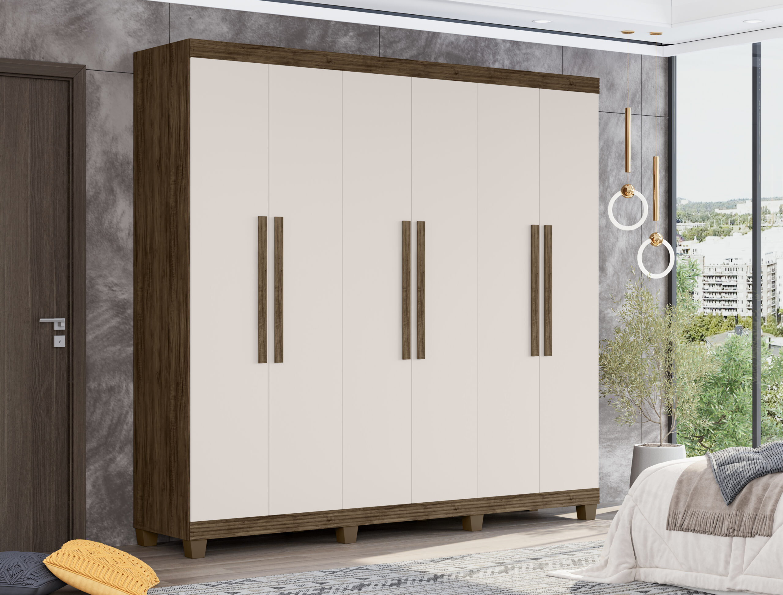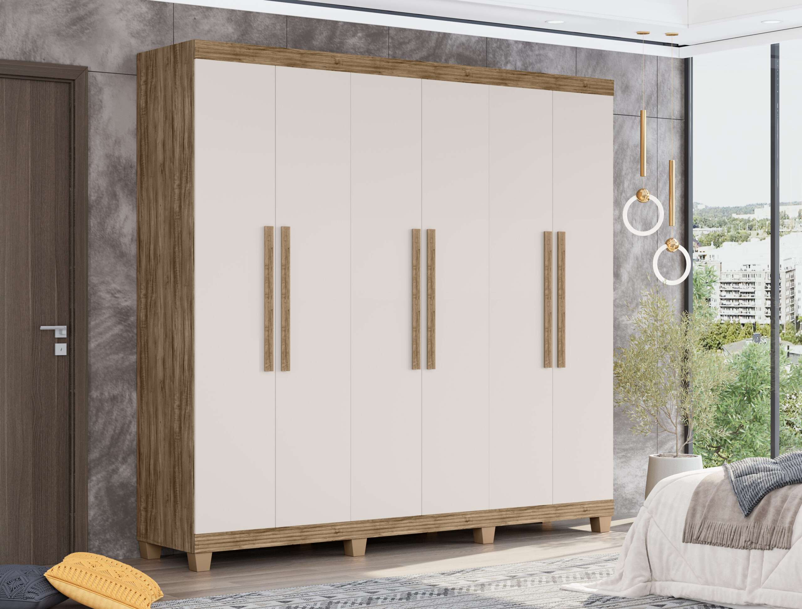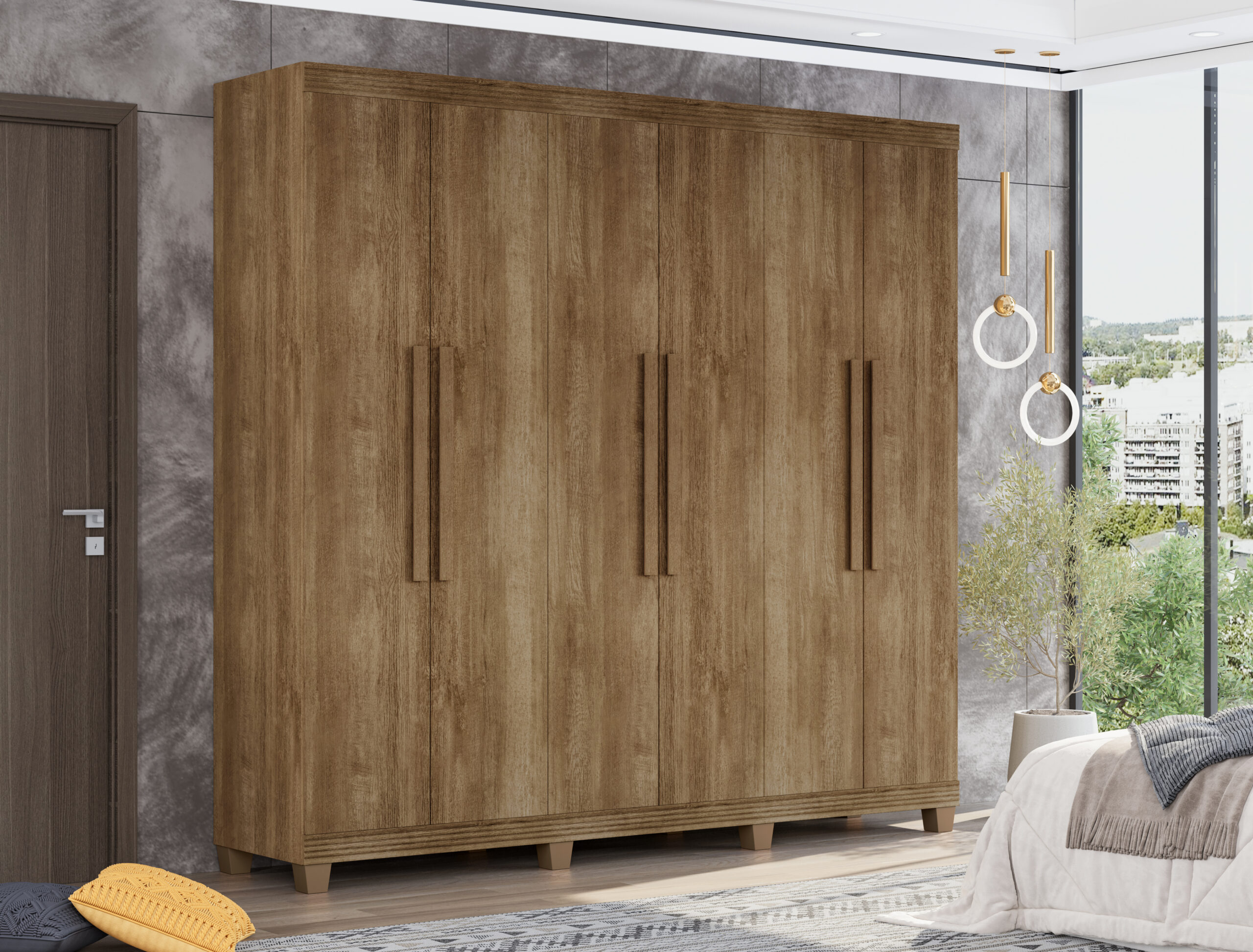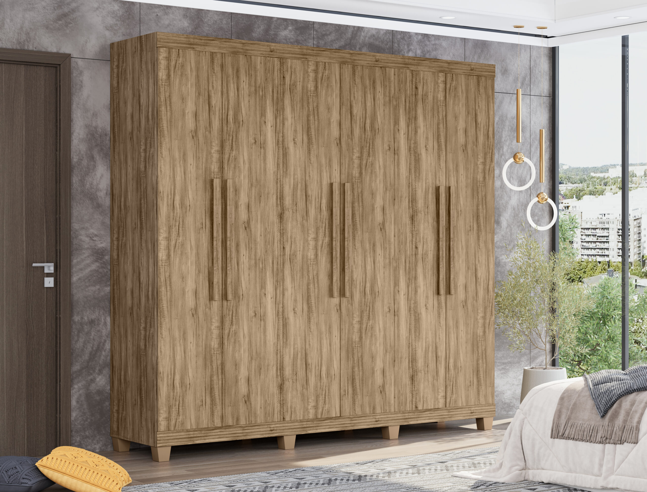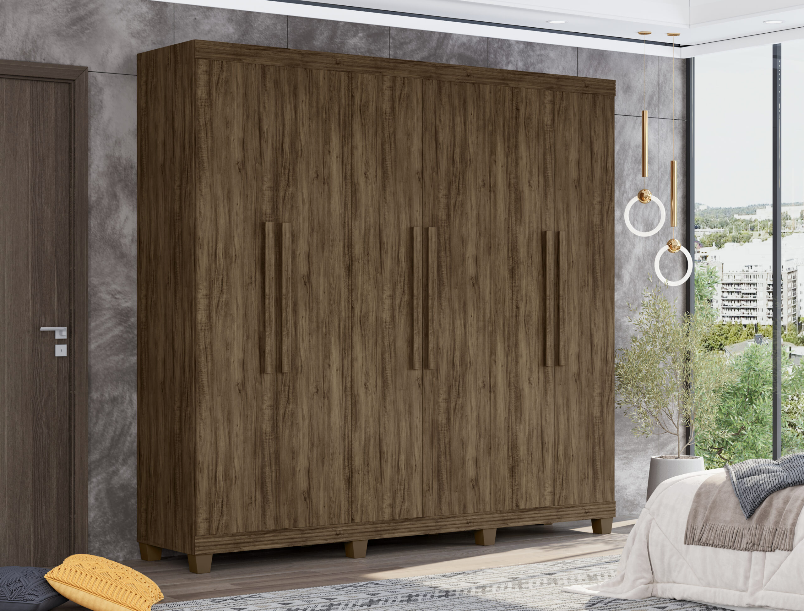 O Guarda-Roupa Asturias conta com layout funcional, 6 portas e 5 gavetas que proporcionam melhor distribuição de roupas e acessórios, garantindo praticidade no dia a dia |