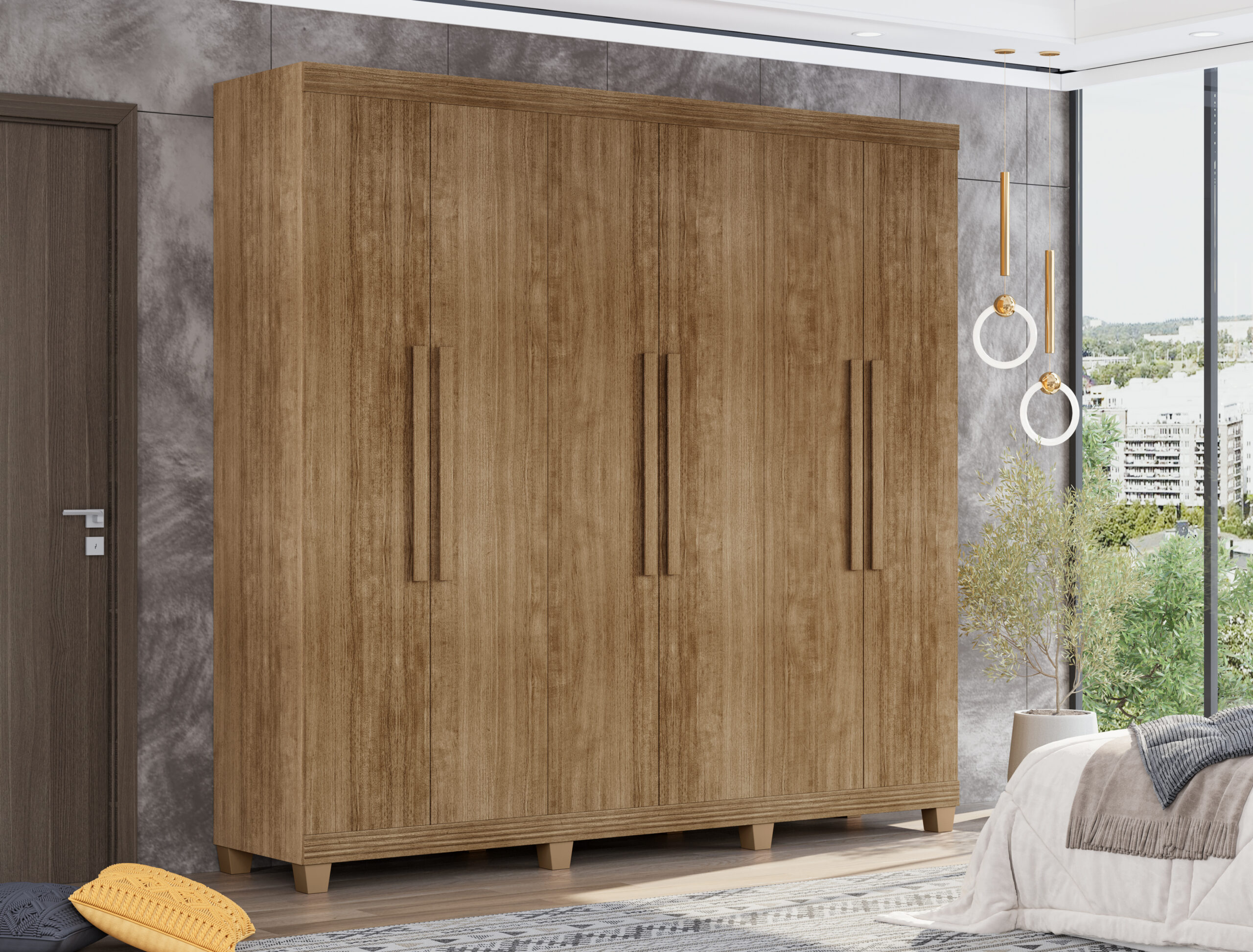 Guarda Roupa Asturias 06 portas 05 gavetas Kit Espelho Opcional 100% MDF