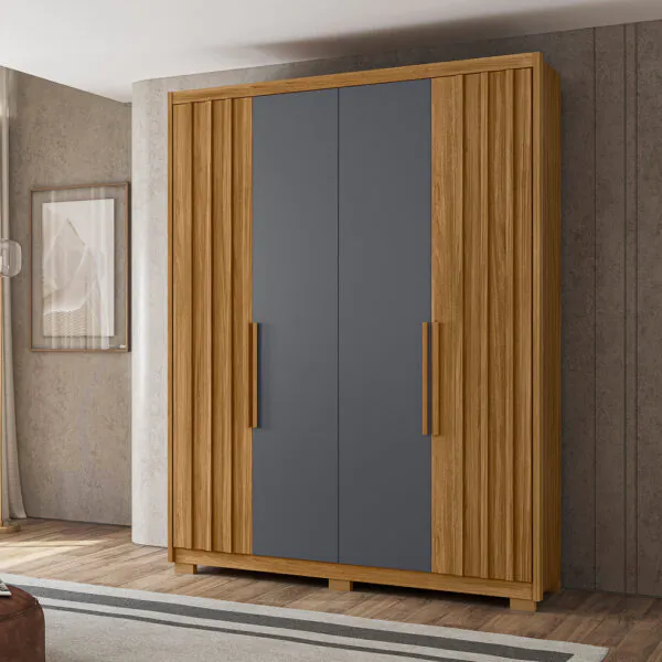 Roupeiro com detalhes ripado buscando elegância e sofisticação ao seu quarto.
