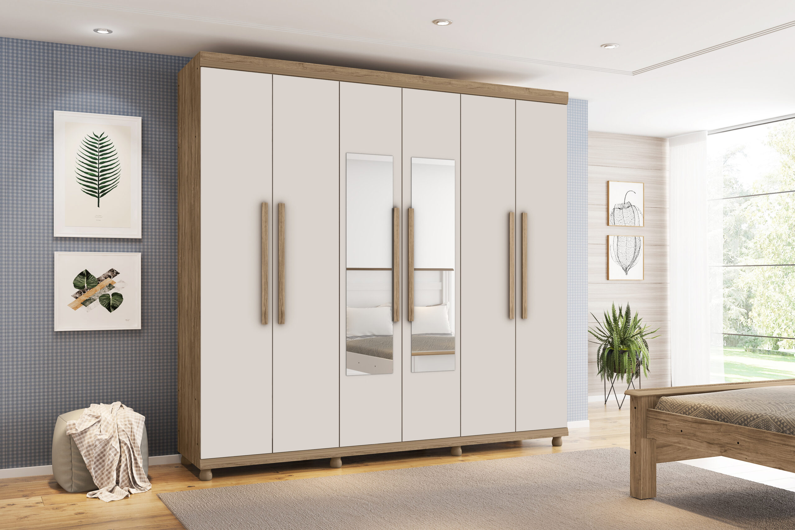 Com design elegante e organização inteligente, o Guarda-Roupa Gênova traz 6 portas e 3 gavetas que valorizam cada centímetro do seu espaço, oferecendo praticidade, beleza e capacidade para acompanhar sua rotina com conforto |