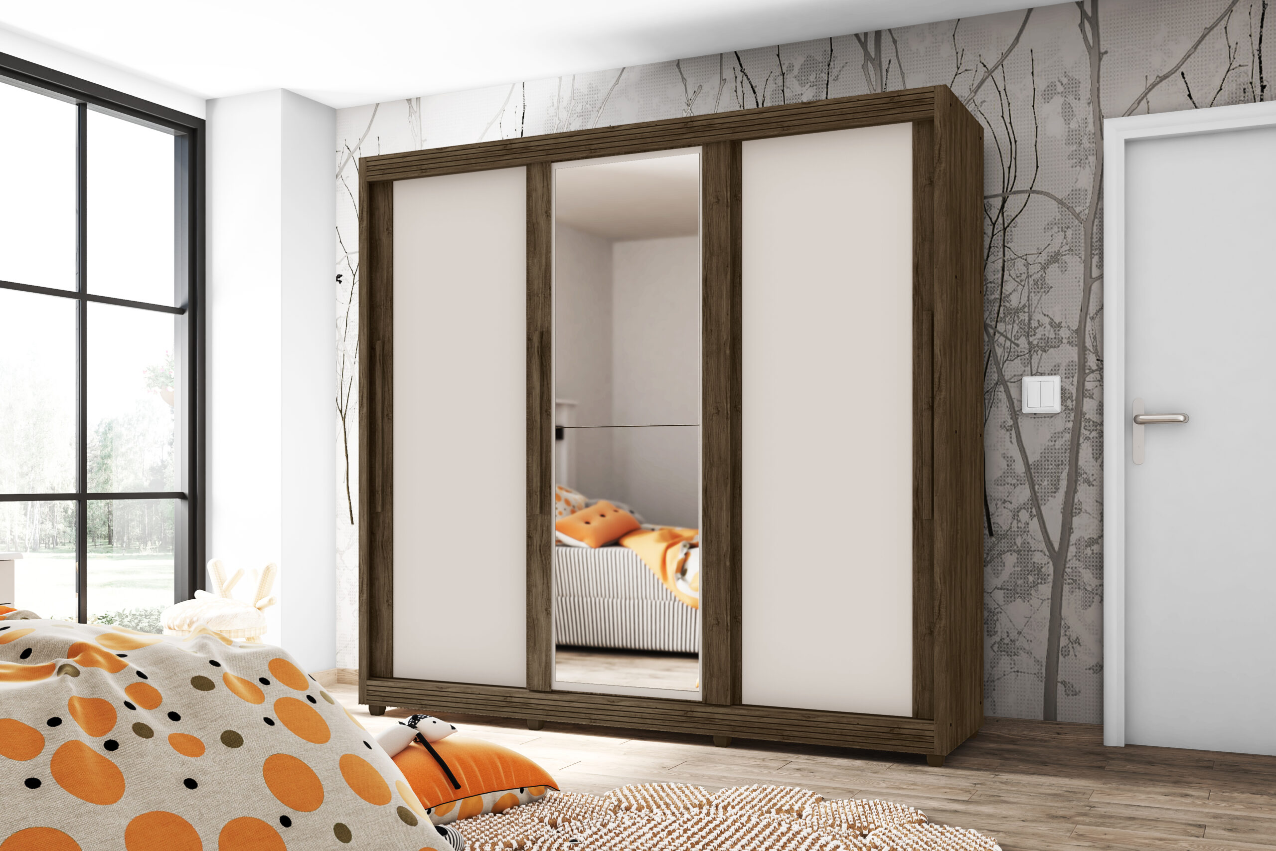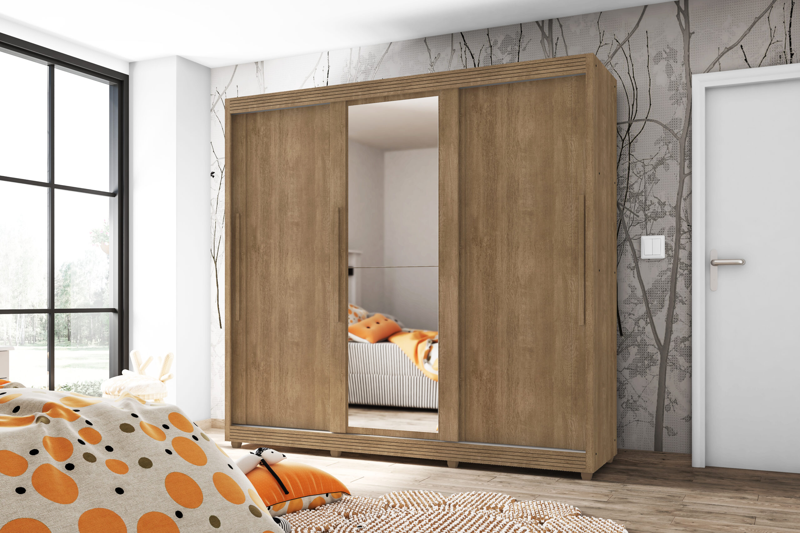 Guarda Roupa Veneto Casal 03 portas de correr 05 gavetas Kit Espelhos Opcional 100% MDF