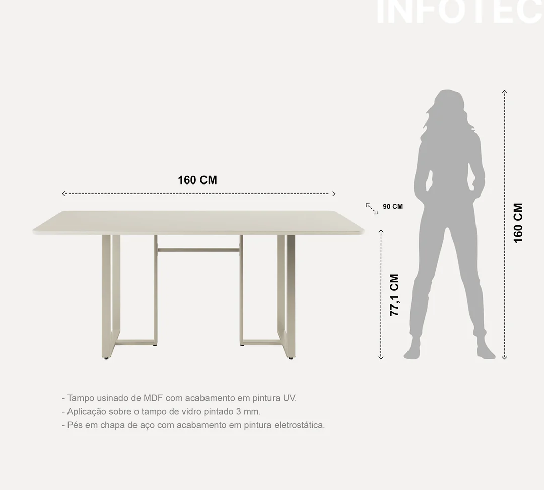 MESA ARCADIA 1.6 COM PÉS EM ALUMINIO