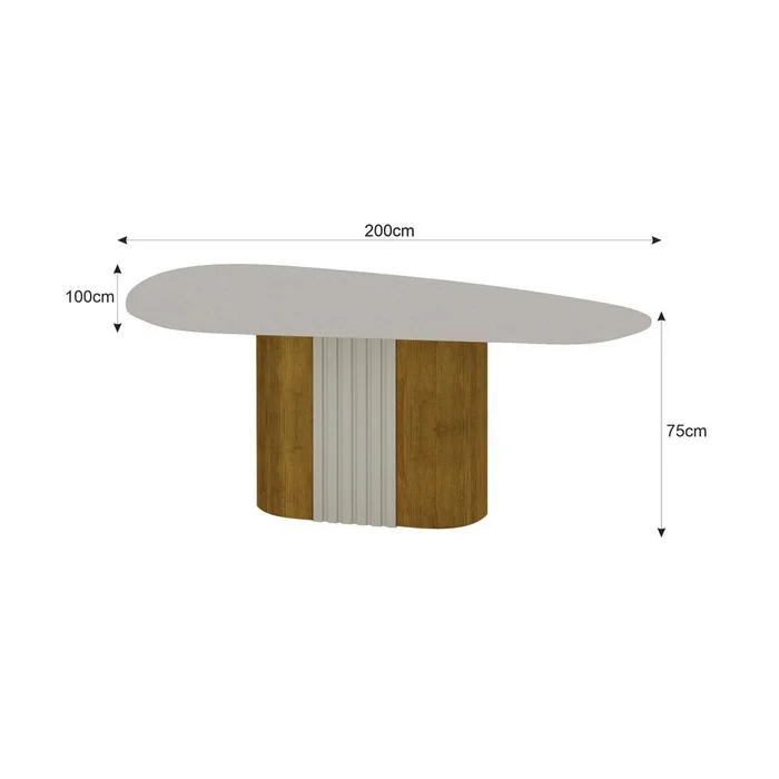 Mesa Dacota 2,00 m com vidro e tampo em acabamento orgânico