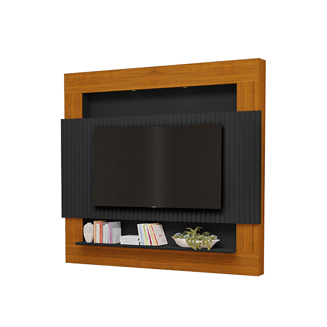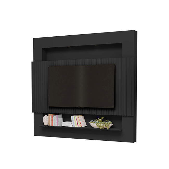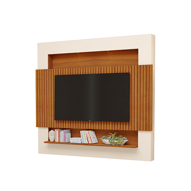 Com linhas ripadas que evocam movimento e delicadeza, este painel transforma sua sala em um ambiente de pura elegância, criando um cenário acolhedor e visualmente marcante para a sua TV. |