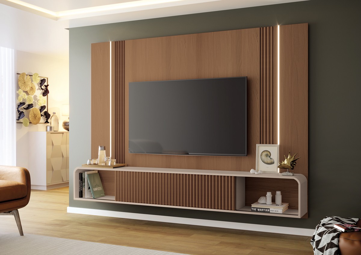 O Painel Suspenso Empire transforma sua sala em um refúgio de elegância e tecnologia, unindo iluminação em LED, design imponente e a resistência do 100% MDF para criar um ambiente sofisticado, acolhedor e cheio de presença.
