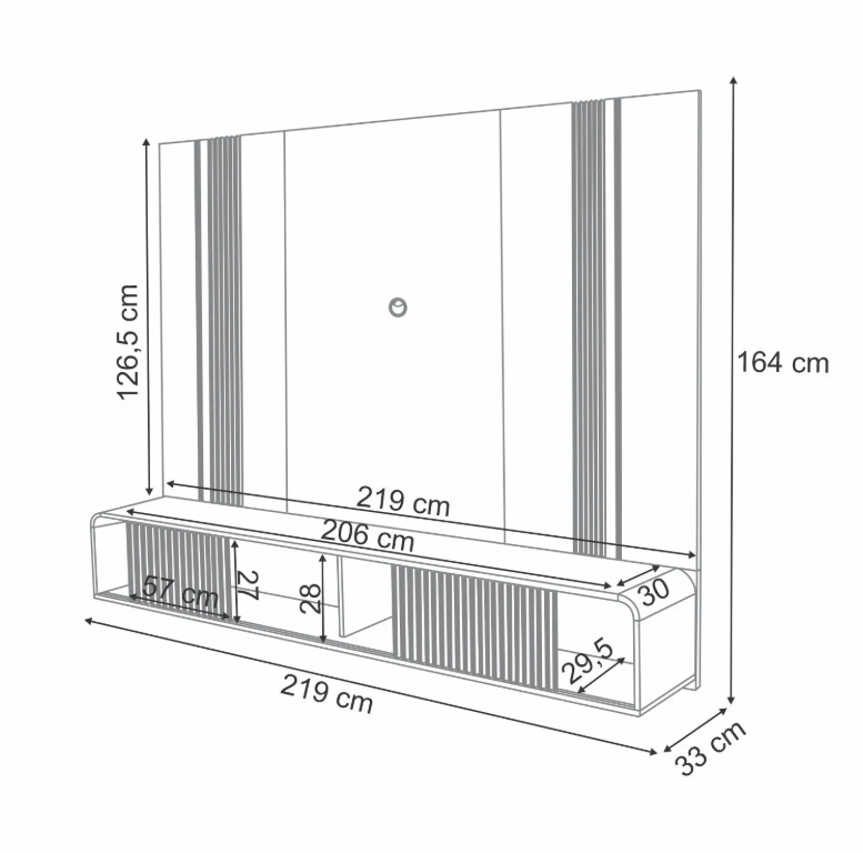 • Design imponente projetado para TV de até 85” fixada no painel;