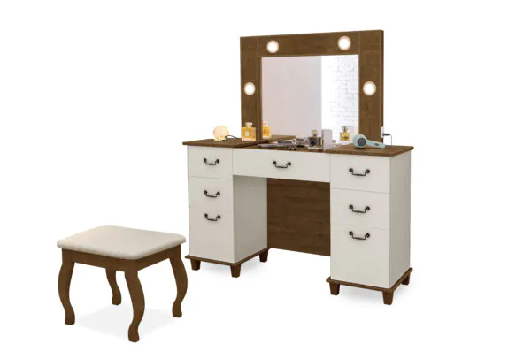 A Penteadeira Camarim New Seul eleva o seu momento de cuidado pessoal com um design iluminado e sofisticado, transformando qualquer ambiente em um cenário de beleza e inspiração. |