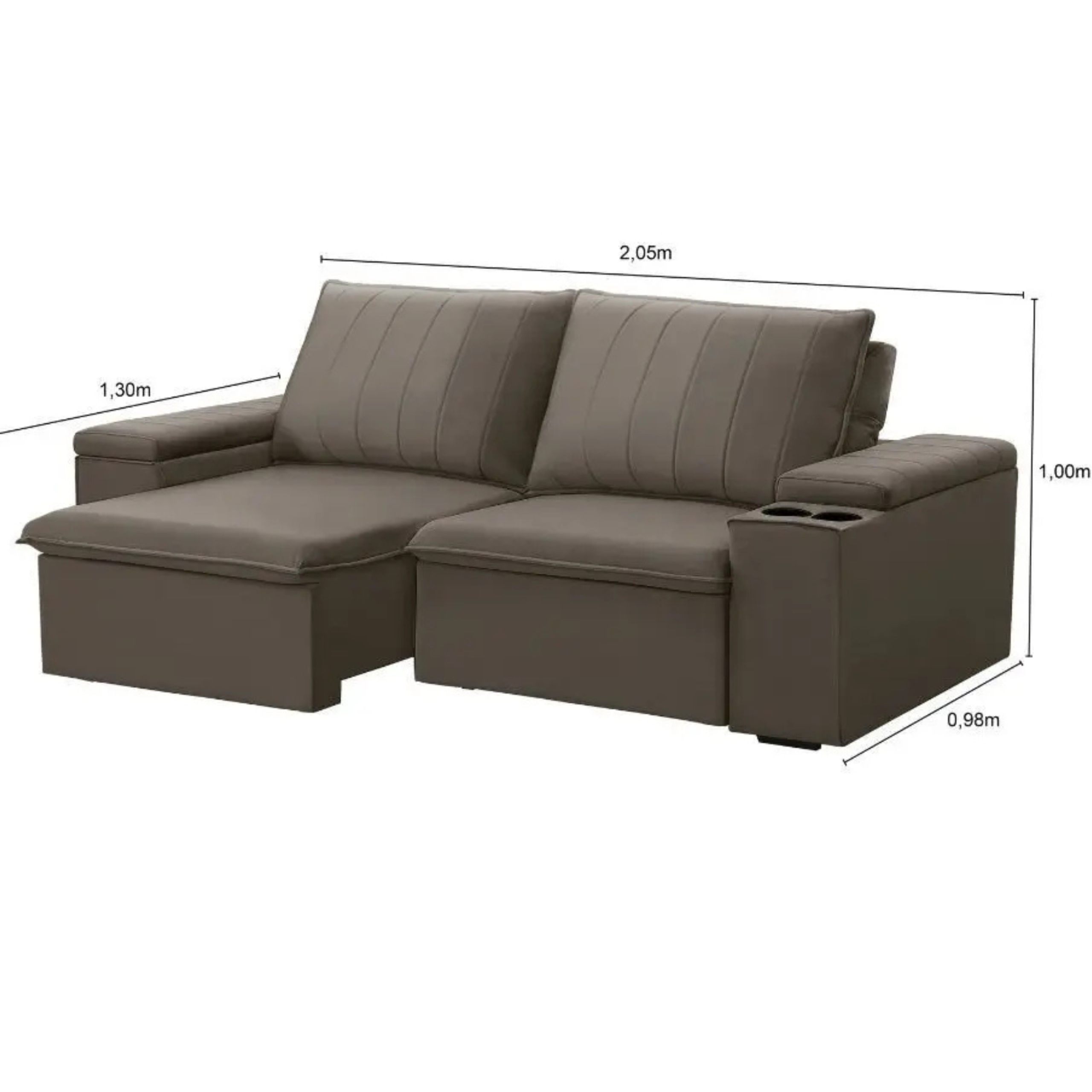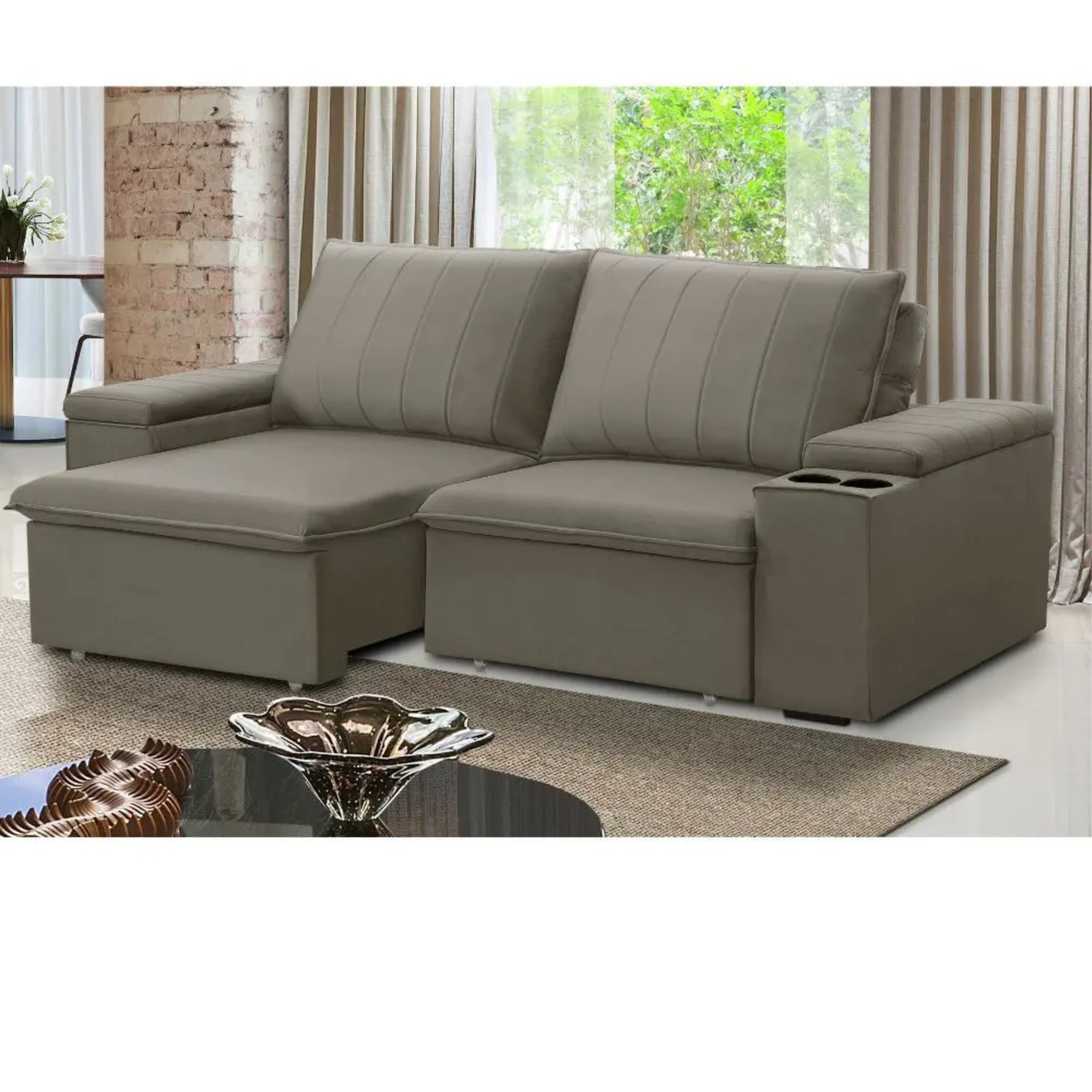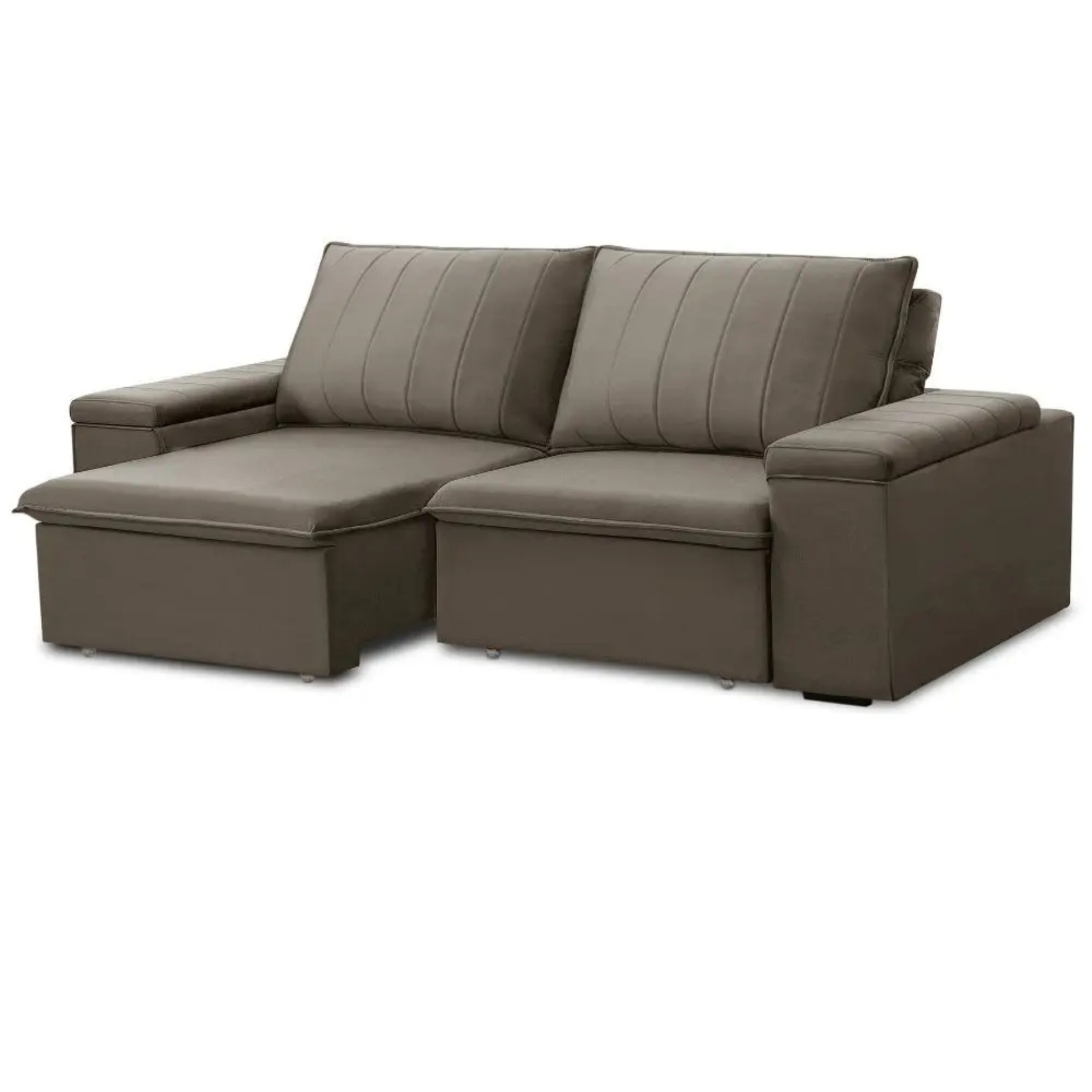 Com design funcional, o Sofá Retrátil oferece conforto completo com sistema retrátil e reclinável em 5 estágios. Ideal para salas modernas e espaços otimizados. |