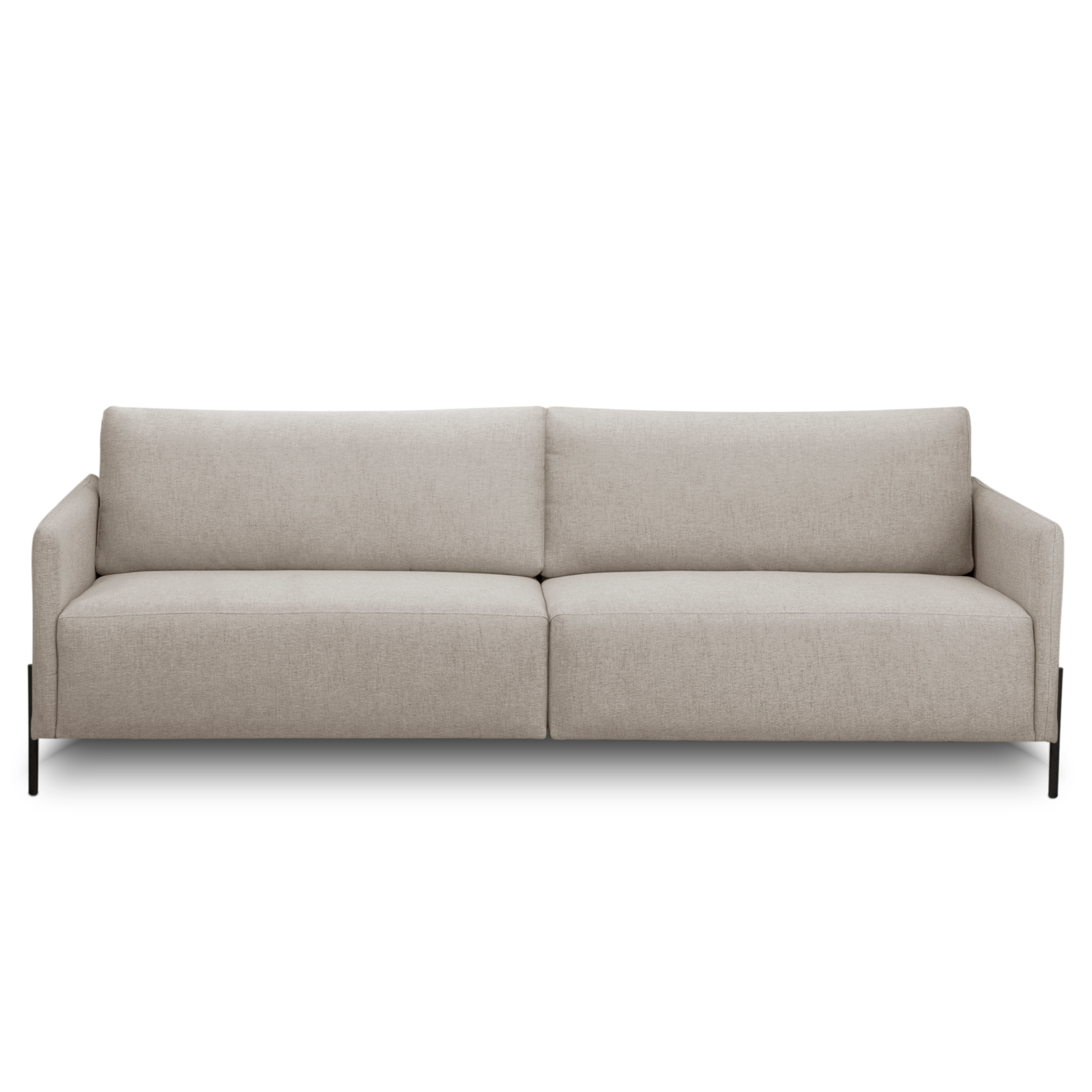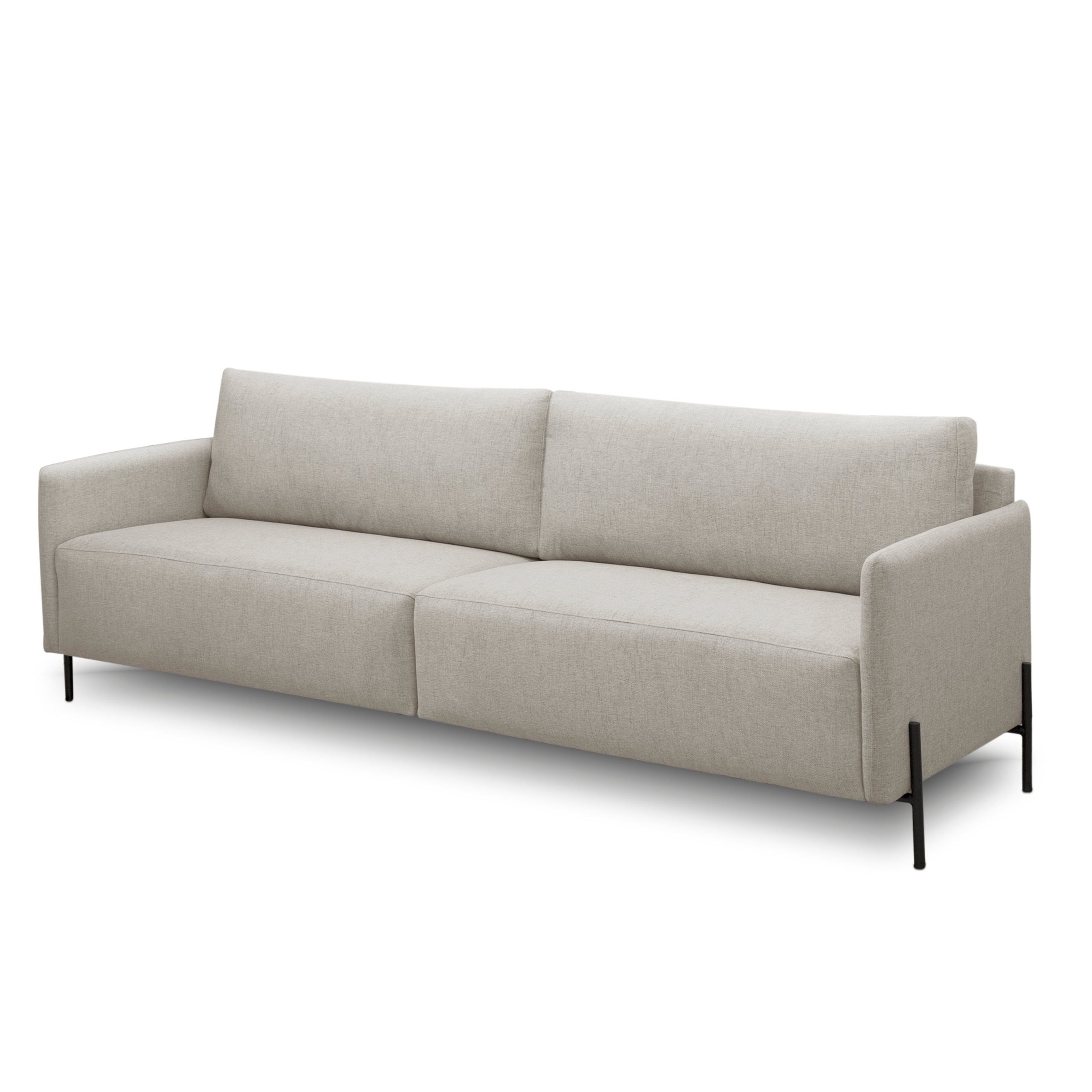 Sofá Bravino Living com chapas de mdf e assento de espuma.