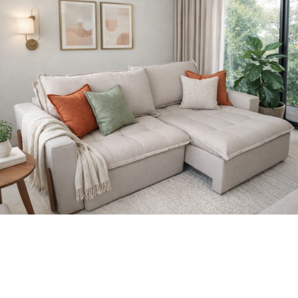 Desenvolvido para oferecer máximo conforto e aconchego, esse sofá une design moderno, excelente acabamento e o espaço ideal para relaxar todos os dias.