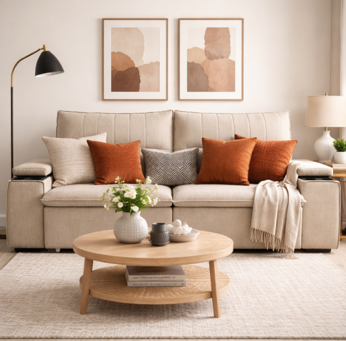 Modelo ideal para ambientes compactos, o sofá retrátil e reclinável Pavia é perfeito para relaxar em frente à TV ou na roda de bate papo com amigos e familiares na sala de estar.
