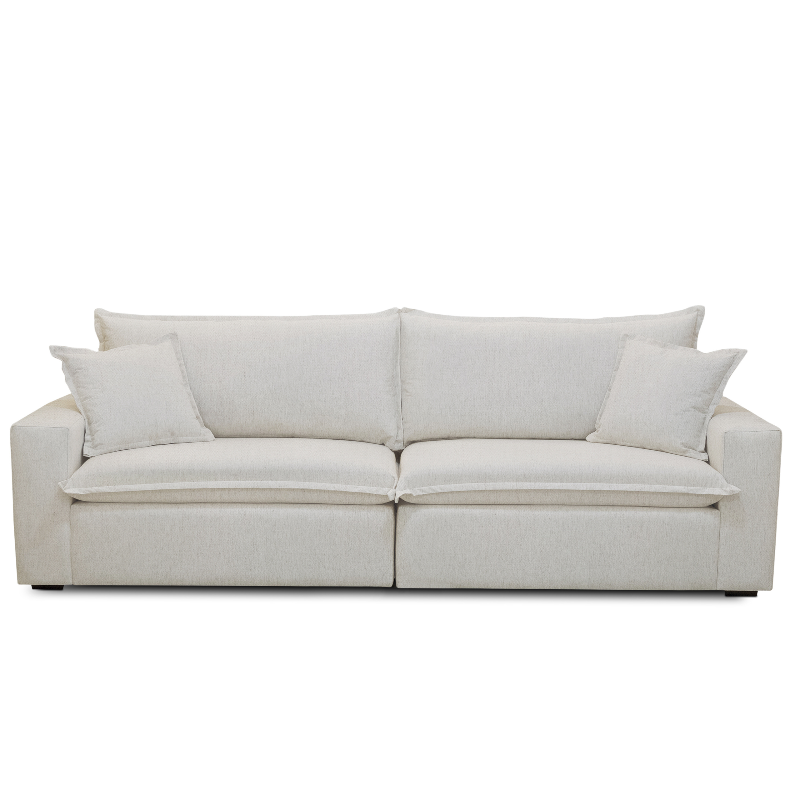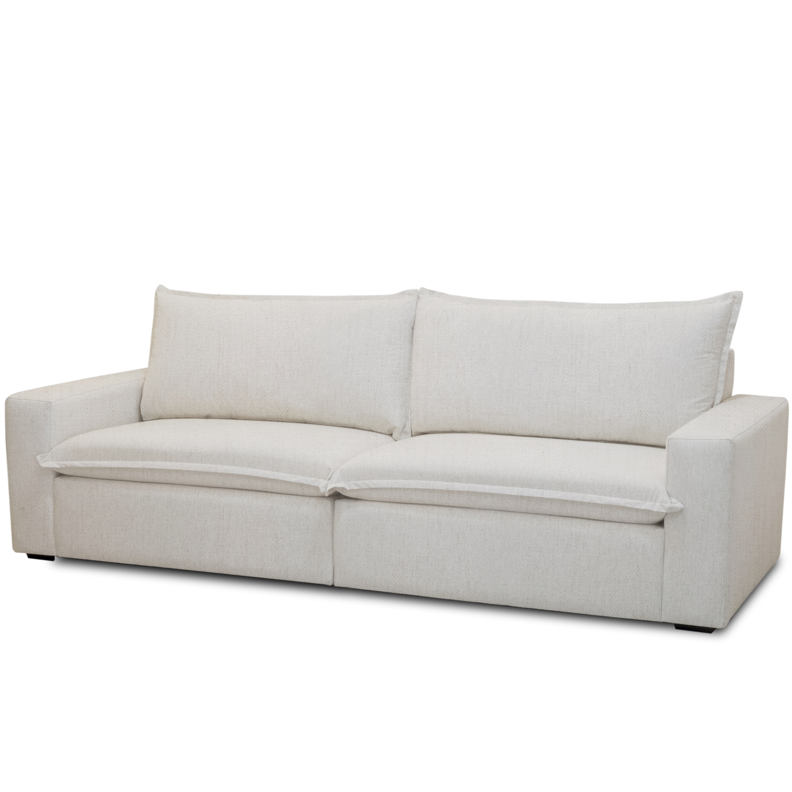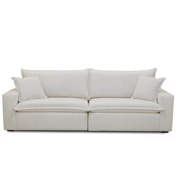 Sofá Potenza 100% com fibra siliconada nos encostos assento com molas ensacadas.