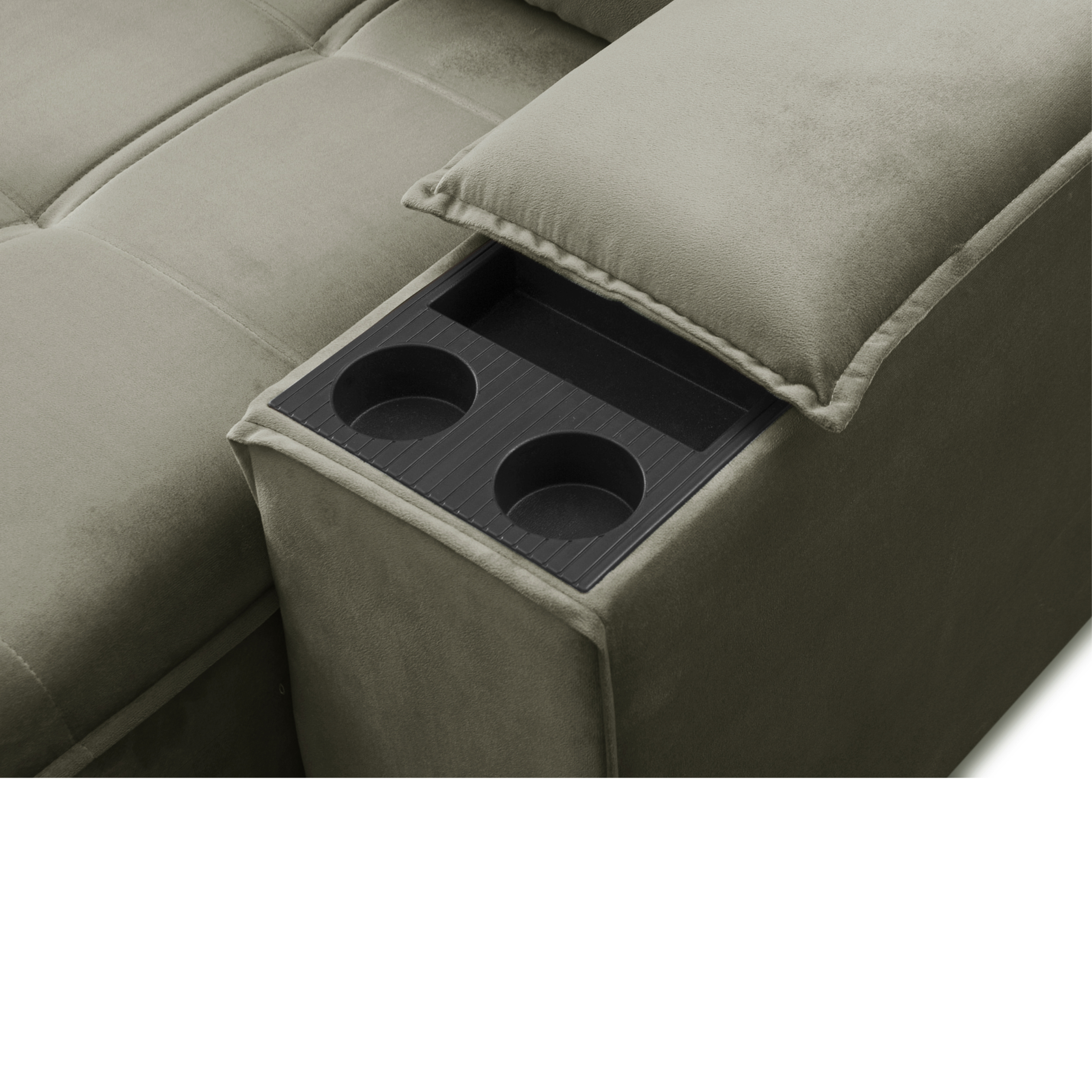 • BRAÇOS: Retráteis e removíveis, compostos por espuma D-20, com porta-copos de poliuretano.