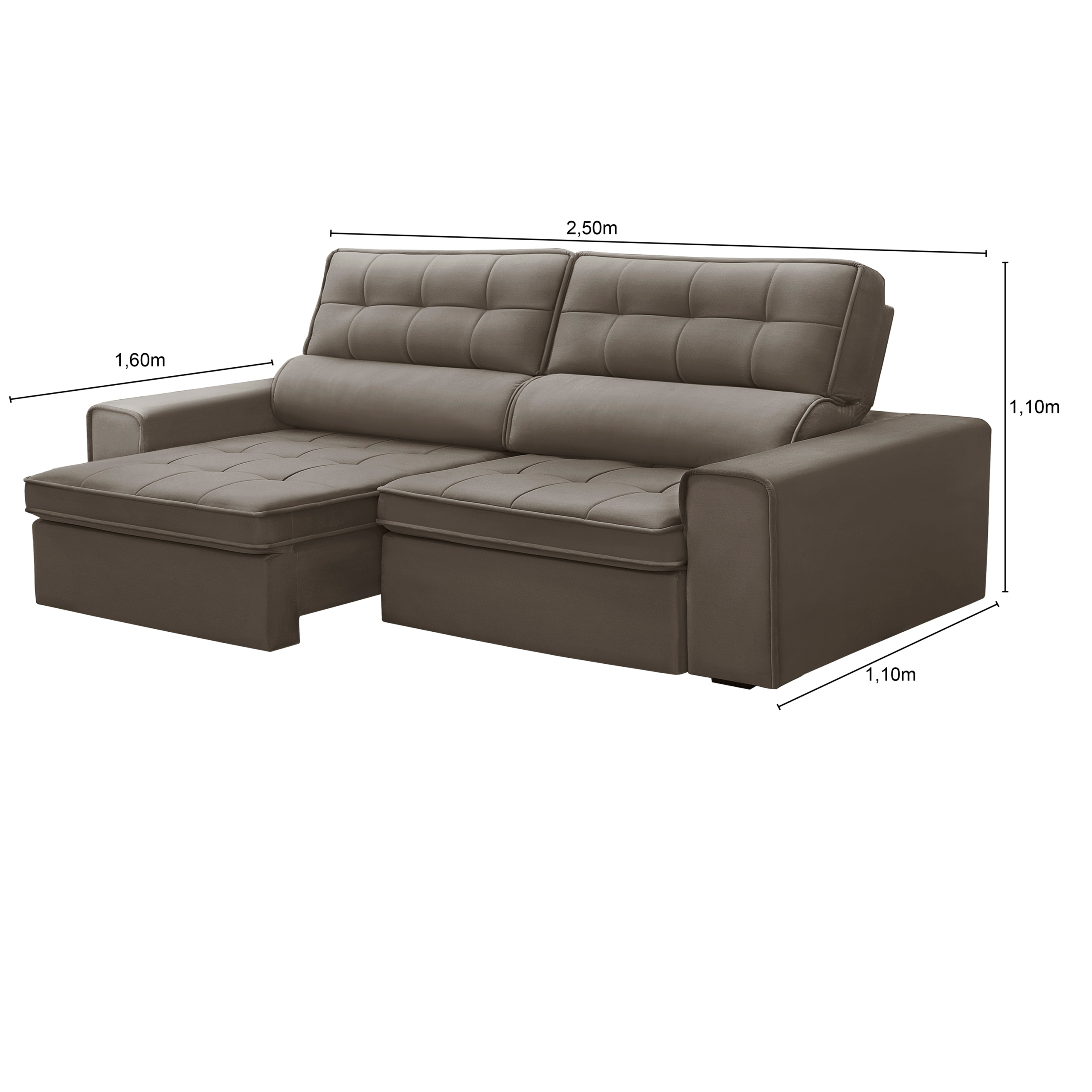 Pensado para quem busca beleza e funcionalidade, o Ravena combina veludo suave, design moderno e conforto ajustável para elevar o estilo da sua sala.