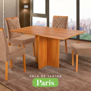 Conjunto Sala de Jantar Mesa Paris Madeira Maciça Cadeiras Estofadas Vitória